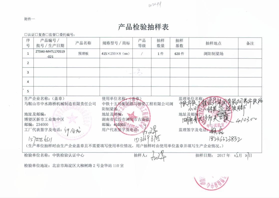 預埋板產品抽樣報告