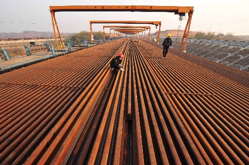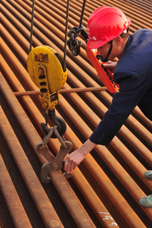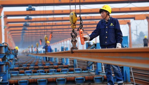 武漢,2010年11月26日 石武鐵路客運專線湖北段即將開始鋪軌 11月26日,中鐵十一局集團職工在為鐵軌掛上吊鉤,做鋪軌準備。 經過中鐵十一局集團等單位建設者的艱苦奮戰,石武鐵路客運專線湖北段建設進展順利,鋪軌工作已準備就緒,將于12月上旬開始鋪軌。石武鐵路客運專線建成后,石家莊到武漢的行車時間,將由目前的6至9個小時,縮短到3個多小時。